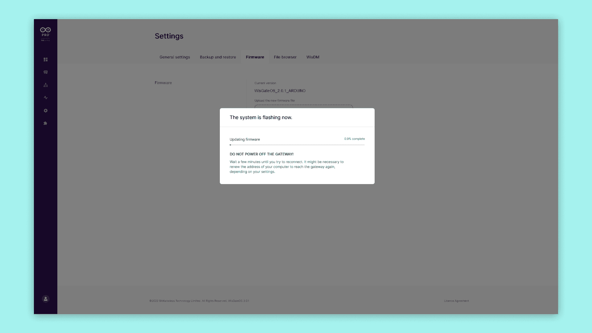 On the WisGate Dashboard, open the Settings page and click on the "Firmware" tab.